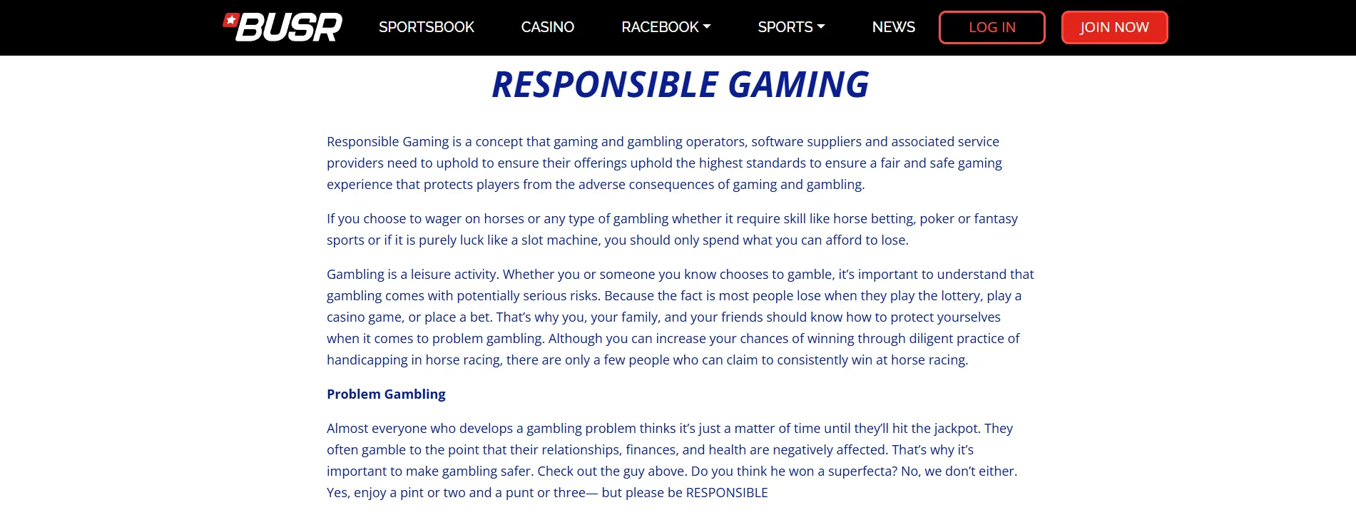 If you want to take a break or limit access to certain games, simply contact support@busr.com. For example, if you enjoy horse betting but want to block the casino, BUSR can adjust your account to fit your needs.